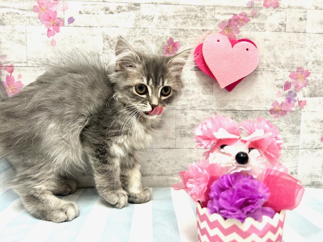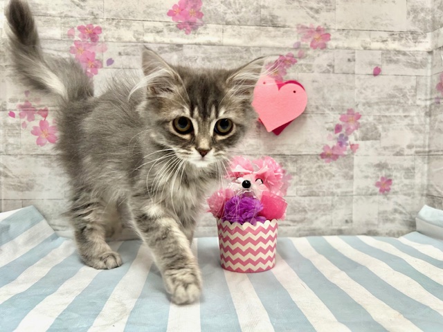 カラー:ブルーパッチドタビー&ホワイト 生年月日:2024年11月29日 性別:女の子 出生地:千葉県 入店日:2025年1月27日